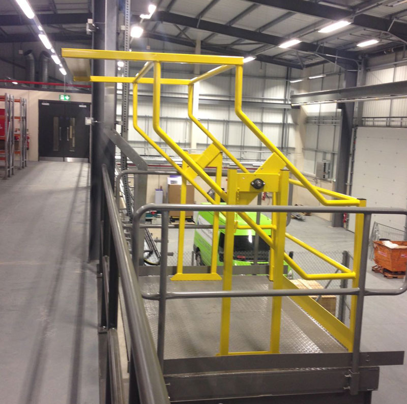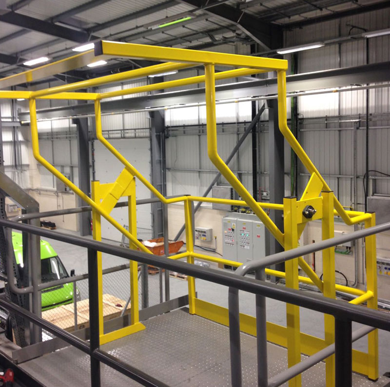 Designed, manufactured, supplied and installed a pallet safety gate for existing platform at Carrington power station. The client required a safe solution for loading pallets on to their existing platform which is at a height of 4.5m in the air. So we designed them a safety gate that stays closed when not in use which ensures the safety of people near to the area at height. It can then be manually opened while pallet is loaded on to platform using a fork lift truck and prevents people entering the area until pallet is moved and gate is back in the closed position. Project was completed on time and to budget.